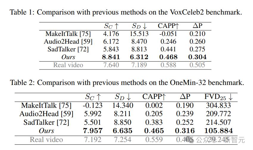 研究人员还使用了一组全新的指标对模型能力进行评估,结果表明该方法在各个维度上都显著优于之前的方法,可以提供具有逼真面部和头部动态的高质量视频,还支持以高达40 FPS的帧速率实时生成512×512视频,启动延迟可忽略不计。
