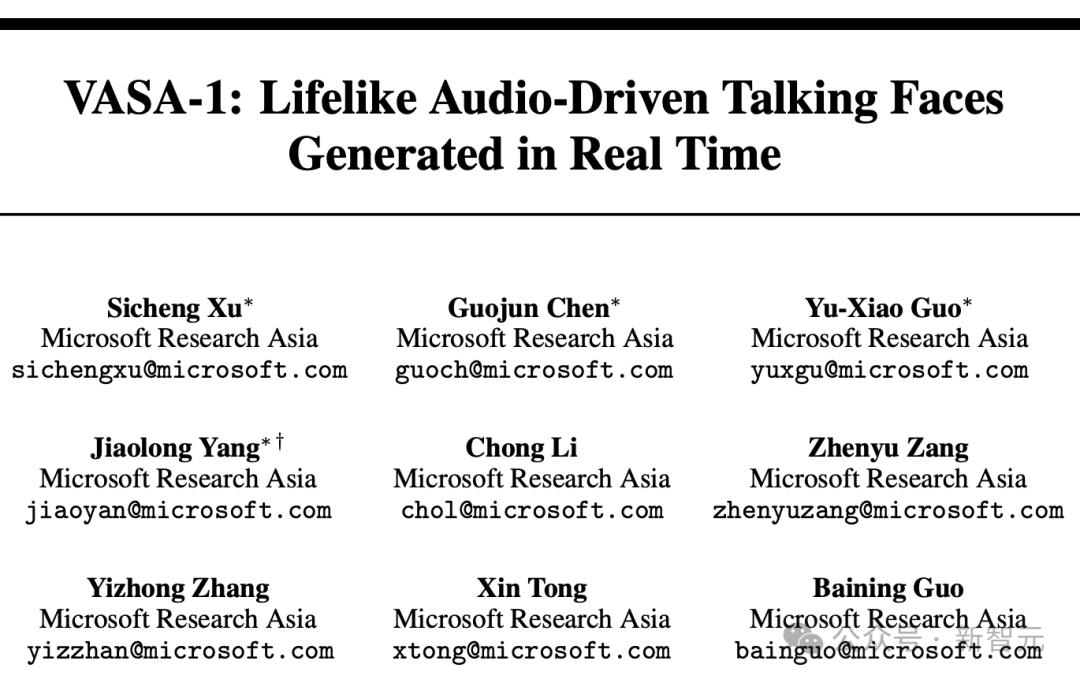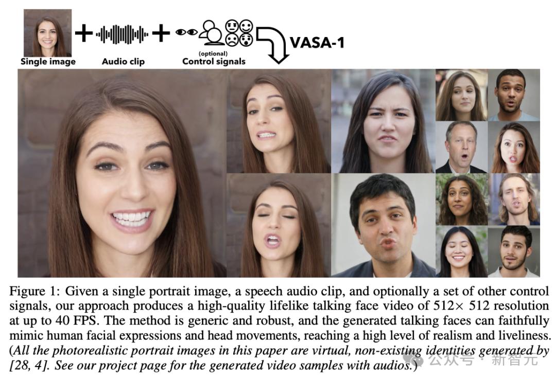 最近,微软亚洲研究院的研究人员抛出了一个重磅炸弹VASA-1框架,利用视觉情感技巧(VAS,visual affective skills),只需要输入一张肖像照片+一段语音音频,即可生成具有精确唇音同步、逼真面部行为和自然头部运动的超逼真说话面部视频。