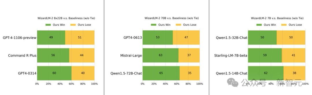 在WizardLM 2训练中,还采用了AI Align AI(AAA)方法,可以让多个领先的大模型相互指导和改进。