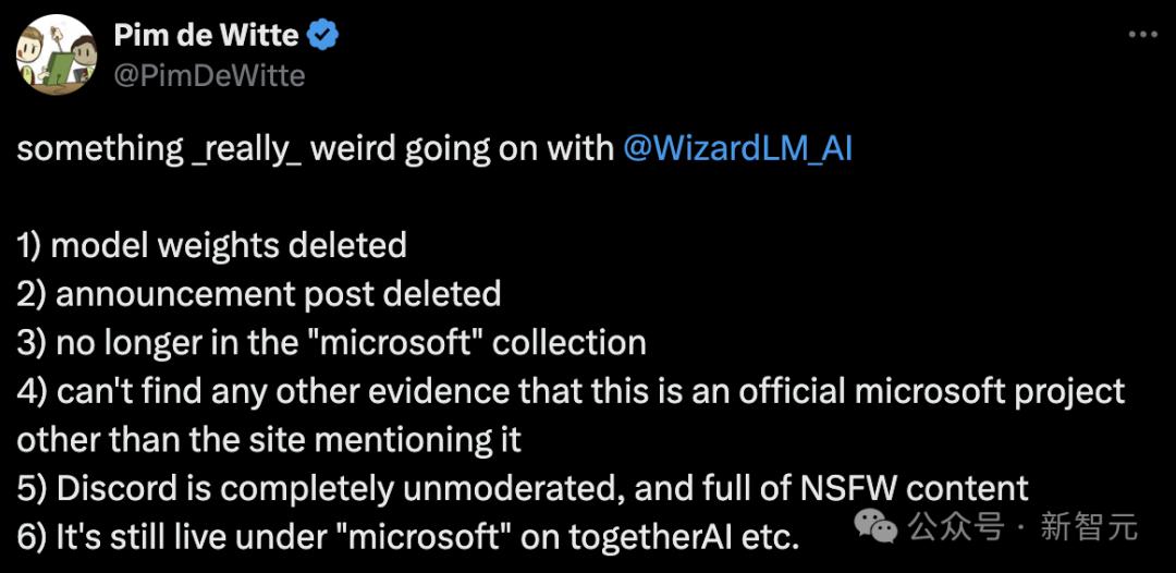 有网友突然发现,WizardLM的模型权重、公告帖子全部被删除,并且不再微软集合中,除了提到站点之外,却找不到任何证据证明这个微软的官方项目。