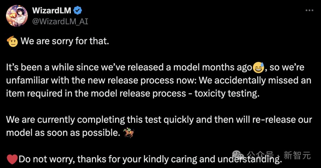 随后,微软团队现身道歉并解释道,自几个月前WizardLM发布以来有一段时间,所以我们对现在新的发布流程不太熟悉。