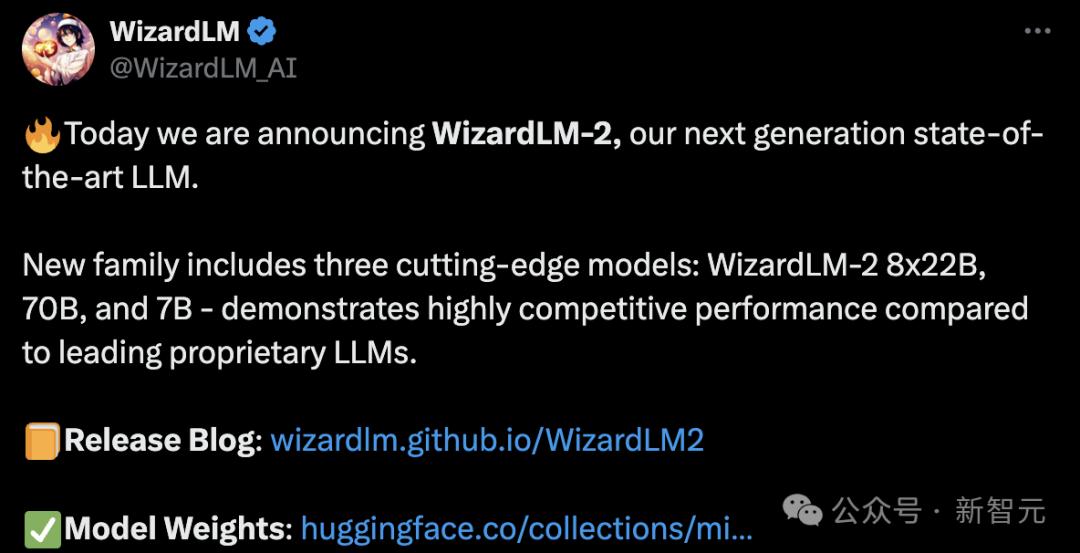 时间推进到4月15日,微软开发者官宣了新一代WizardLM,这一次是从Mixtral 8x22B微调而来。