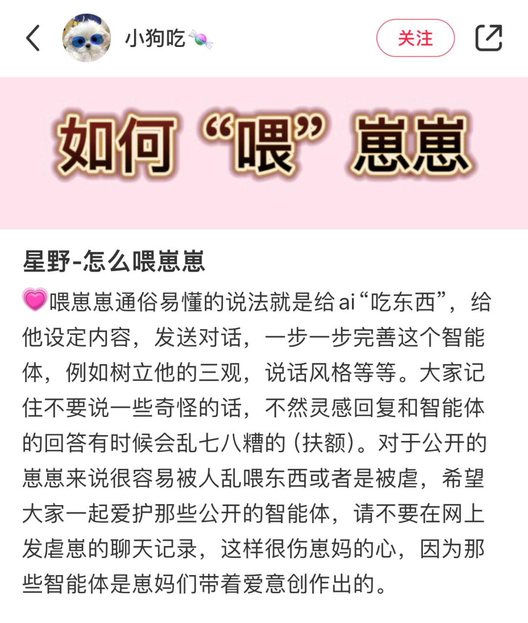 “不是ChatGPT/作业帮用不起,而是星野更有性价比。”星野就是这些APP中目前相对热门的一款。除了拿它当自由度更高的乙游玩,有人用它来查资料、练口语,有人用它来辅助小说、剧本创作,有人则是将“设圈”玩法移植过来,为自己的OC(原创角色)创建智能体、或者直接用它捏OC,称之为“崽”,自己与它互动或者开放它与其他用户互动。