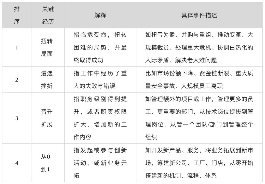 综合以上的观点,笔者梳理出在面试过程中,需要重点把握空降兵候选人的关键经历,排序代表重要程度。