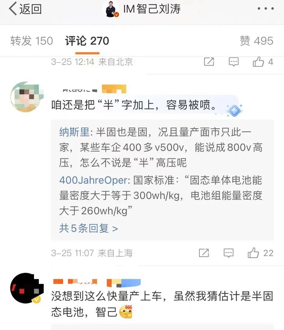 对于网友质疑的到底是“固态还是半固态”电池,智己汽车则给出了一个有趣的解释,即:“白马是不是马呢?”