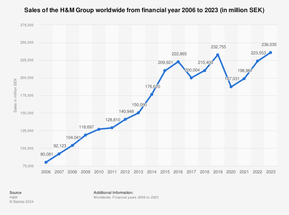 2006-2023年 H&M集团全球营收