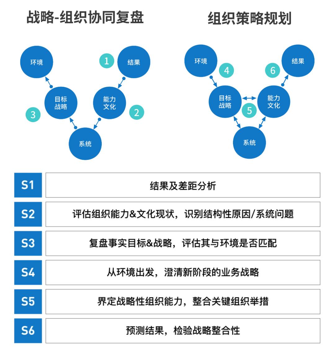这个共同思维框架以及讨论流程有助于我们在讨论“战略-组织协同”时,既能从过去的问题出发(S1-S3步),又可以考虑未来的战略需求(S4-S6步);能让我们在探讨问题的时候,找到结构性/系统性原因,而不是停留在“都是人的问题”这个浅显的层次;能让我们的讨论有步骤感,让讨论有序进行,让高管节奏同步。