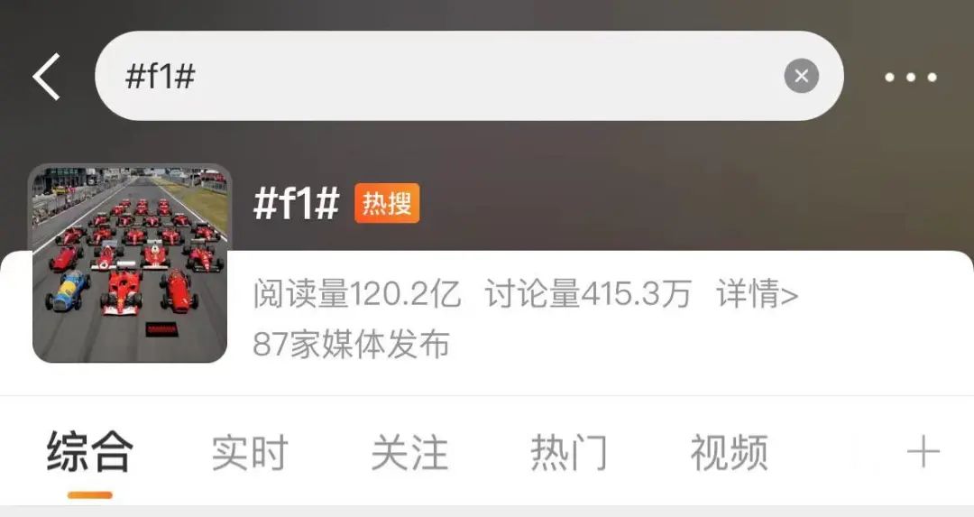 在社交平台上F1成了热门话题,小红书上关于F1的笔记有80多万条;微博上#F1#的话题有120亿阅读,持续霸屏热搜榜。