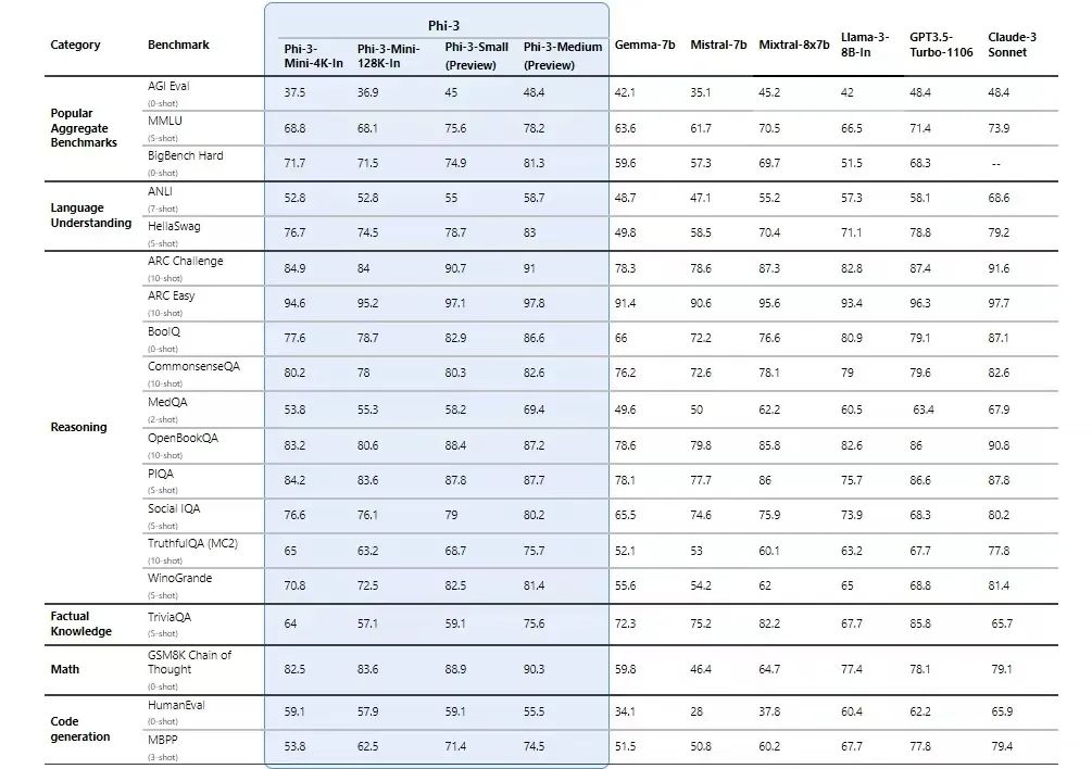 微软发布Phi-3 Mini:3.8B参数小到能塞进手机,性能媲美GPT-3.5