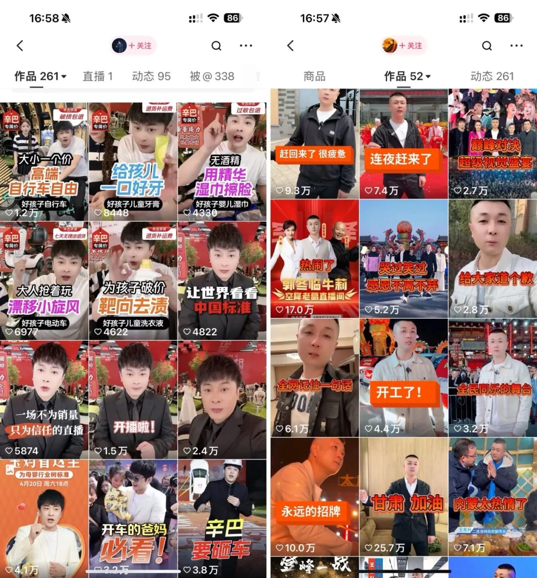 经过「庄帅零售电商频道」对@太原老葛【不忘初心】 的快手账号和老葛优选快手官方企业店铺的分析,无论是粉丝数量,还是作品数量都与@辛有志 辛巴818 差距甚大,但是从短视频作品的点赞、阅读量来看,太原老葛的许多作品已经领先辛巴。其中,最近一条“甘肃 加油”的短视频点赞量更是达到了25.7万。