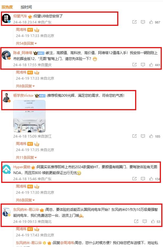 周鸿炜换 车信息一出,评论区和转发区瞬间 “ 沦陷 ” ,秒变大型 “ 广告 ” 现场。