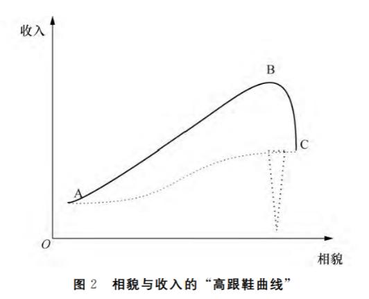 2016年发表于《经济学(季刊)》的论文《越漂亮,收入越高吗?》认为,相貌与收入之间形成一条类似于高跟鞋形状的曲线,即漂亮程度存在一个 “度”(阈值),在达到这个 “度”之前,漂亮有助于提升收入;但过了这个“度”之后,漂亮程度的提升反而会削弱漂亮溢价,表现为最漂亮那一类人的漂亮溢价没有次美者高。
