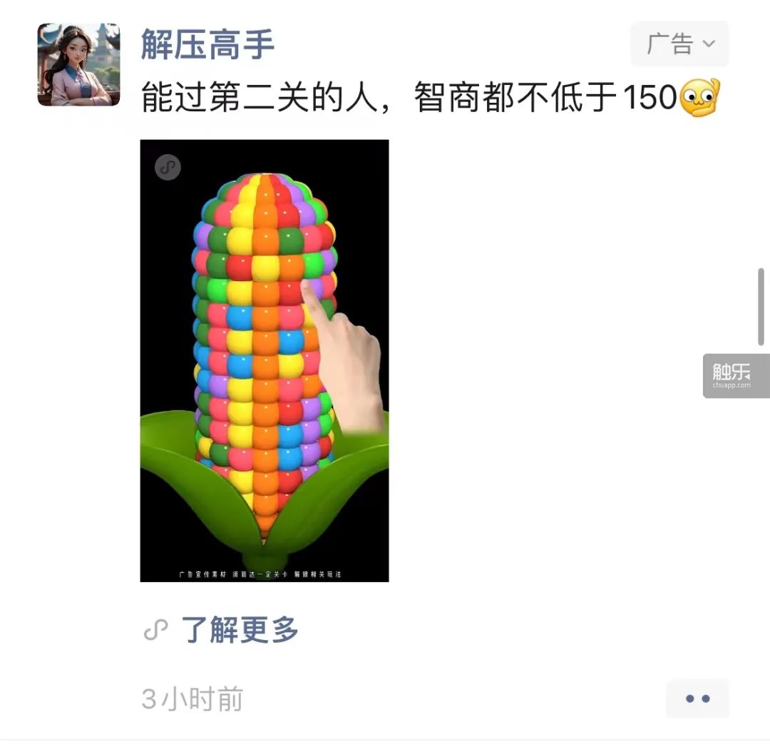 这些游戏的买量视频,也都是围绕着此类内容来的,比如进游戏会送多少福利、游戏关卡是什么类型、玩家能怎么爽,等等。当然,视频素材肯定有很多虚假乃至欺诈的内容,但它本质说得也没错:你点进去玩,就是能爽。