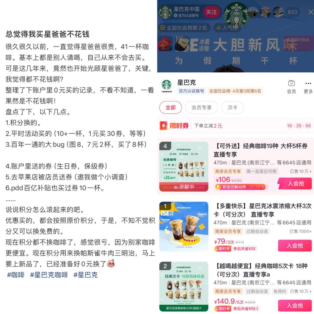 星巴克大力促销,图源:社交媒体、电商平台截图