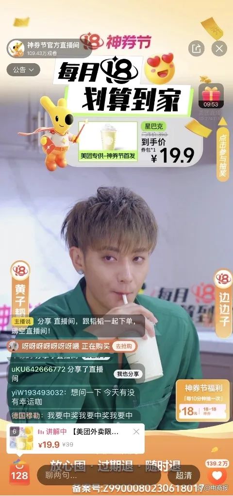 星巴克也同样很早与美团外卖合作,打通了会员数据,双方合作也不止在配送上,更衍生到美团的直播内容端。去年4月,美团开启首场外卖直播,6月打出首个餐饮618。在去年618美团的神券节活动中,星巴克就推出美团外卖专属新品,靠着19.9元的美团神券,收割了一波新客。