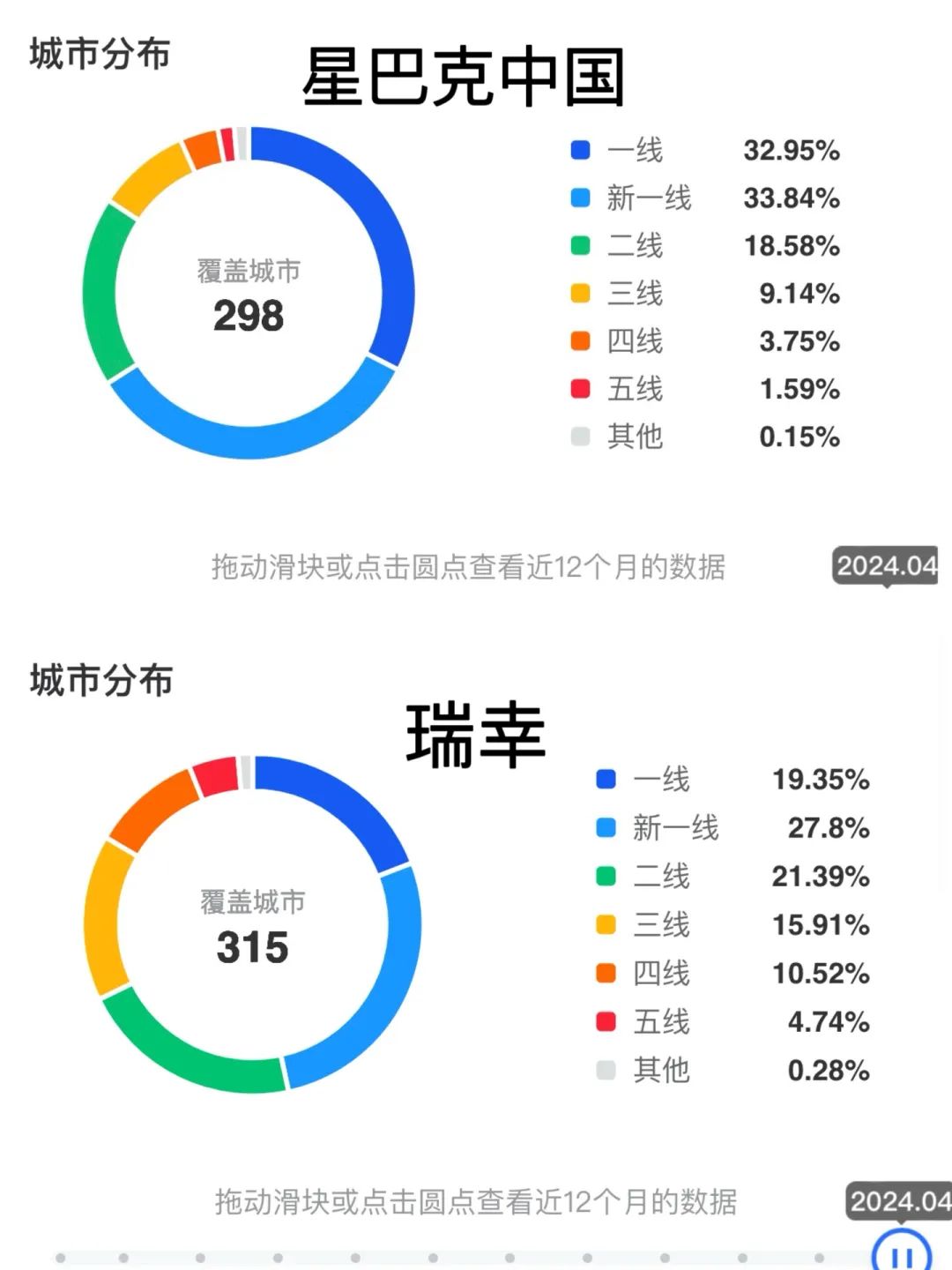 县城是咖啡巨头们的下一个角力场。据「窄门餐饮」数据显示,截至目前,星巴克四五线城市及以下门店数占比约为5.5%,瑞幸约为16%,星巴克远落后于国内玩家,这对门店集中在一二线城市的星巴克来说,进攻县域无疑是一场持久战。
