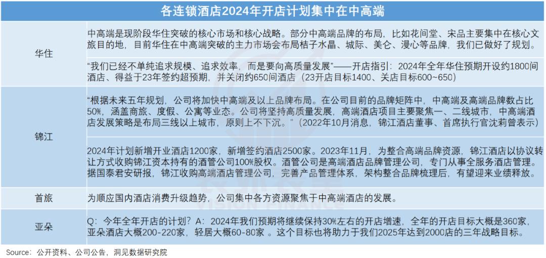 具体到行动上,可以看到,各酒店2024年的扩店计划仍以中高端为核心。