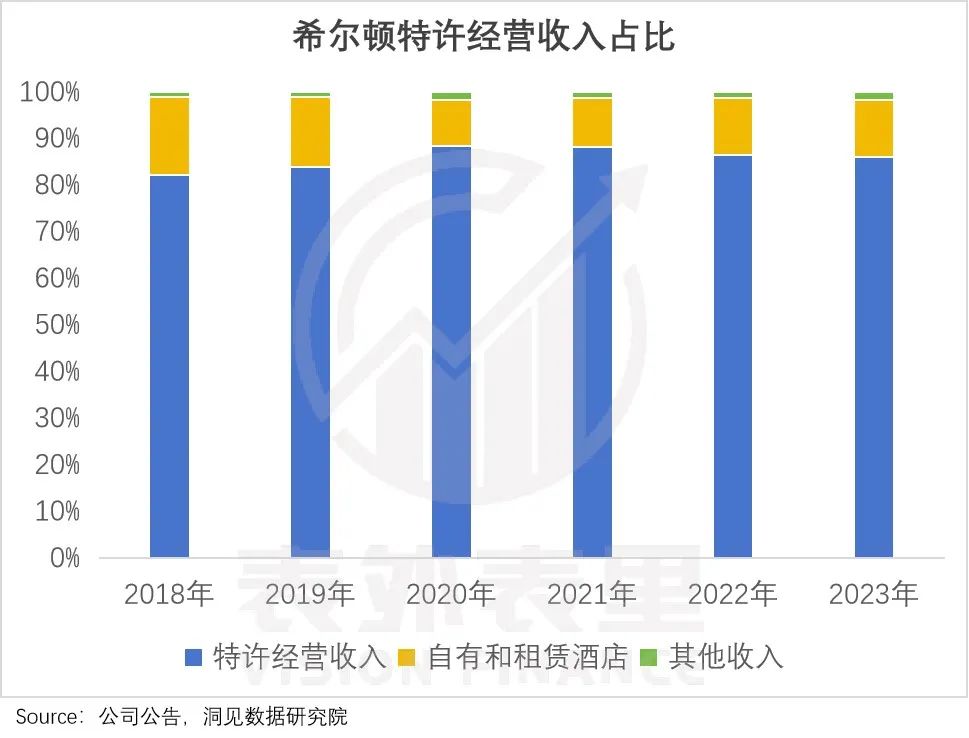这样的双重“利诱”下,加盟商趋之若鹜:希尔顿近几年特许经营及加盟管理收入,稳定在80%以上。