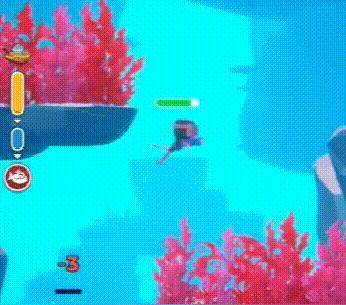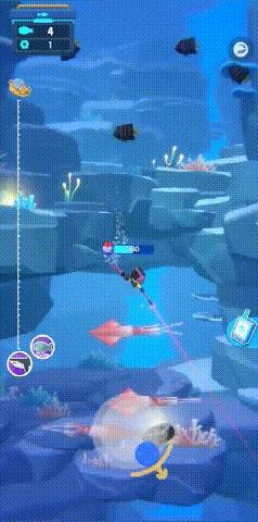 潜水玩法还加入了体力限制和任务系统。每次下潜均会设置一个关卡目标并扣除一定体力。同时,玩家潜水时会显示氧气条,捕鱼、遭到攻击、被珊瑚缠住或者下潜深度增加,都会损耗氧气,氧气耗尽将被送回海面。与《潜水员戴夫》一样,这款游戏也在海底添加了「氧气补给」道具。