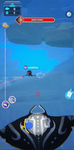 相应地鱼也会对玩家发起攻击。鱼的种类对应不同的血量、伤害值和价值,血量掉光即被捕获,价值根据打捞难度和稀有度而定。部分鱼类还有独立的攻击动作和技能,比如体型庞大的蝠鲼会在海底卷起狂风,乌贼则会喷出墨水挡住玩家视线。整个过程可以看作是玩家在和鱼战斗,有时在水下还会经历Boss战。