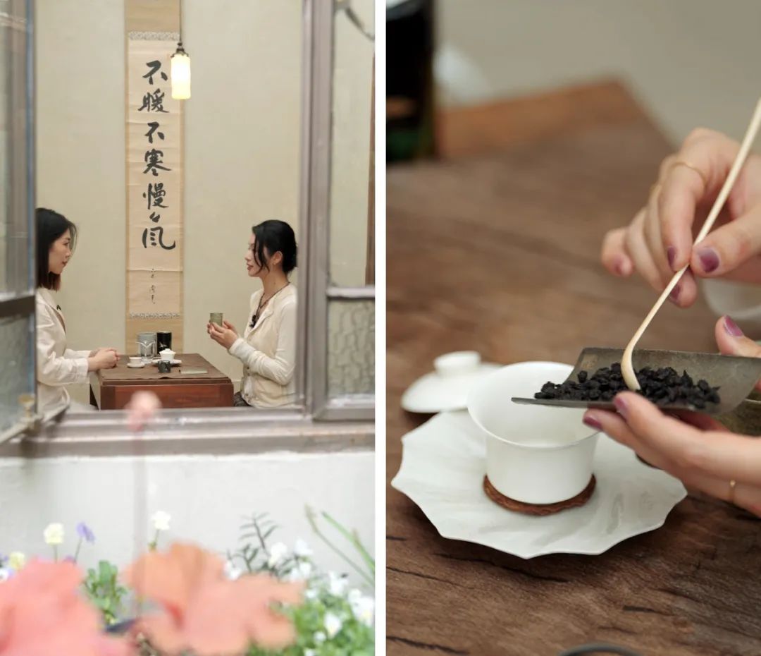 我会根据不同来客,选择不同茶道具。有个朋友平时都喝酒,只有跟我在一起时才会喝茶。在这样的春天,我就会给他找一个饰有野花草的迷你高脚杯。我说,今天以茶代酒,健康一点。一些喝茶多年的朋友,他们说你小小年纪,怎么泡的茶层次很好喝,我说我有自己的魔法。
