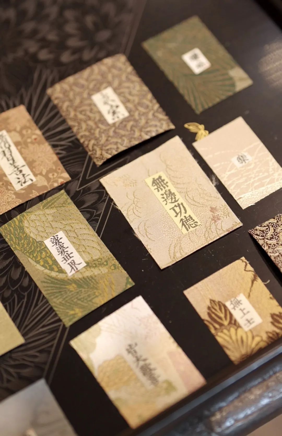 我回收了一些中国古代的经文,选取其中可以警示当代人的词句,裱在了vintage织锦上。它主要的功能是书签,我也会放在手机壳后面作护身符,时常看到有一种警示作用。