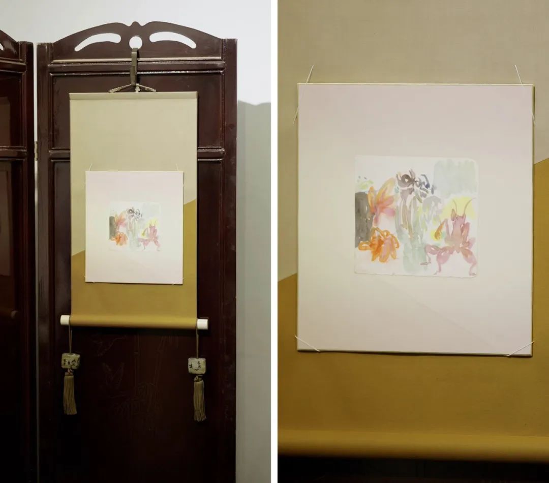对我来说最珍贵的一个收藏是一副茶挂,收来的价格其实不算特别高。上面写着白居易的诗“不暖不寒慢慢风”,上半句应该是“不明不暗胧胧月”,这是一个不知名的作家书写的。它可以代表一种很松弛的生活状态,我想要以这样的生活和节奏去感染他人,原来我们也能活得像诗句一样美好。