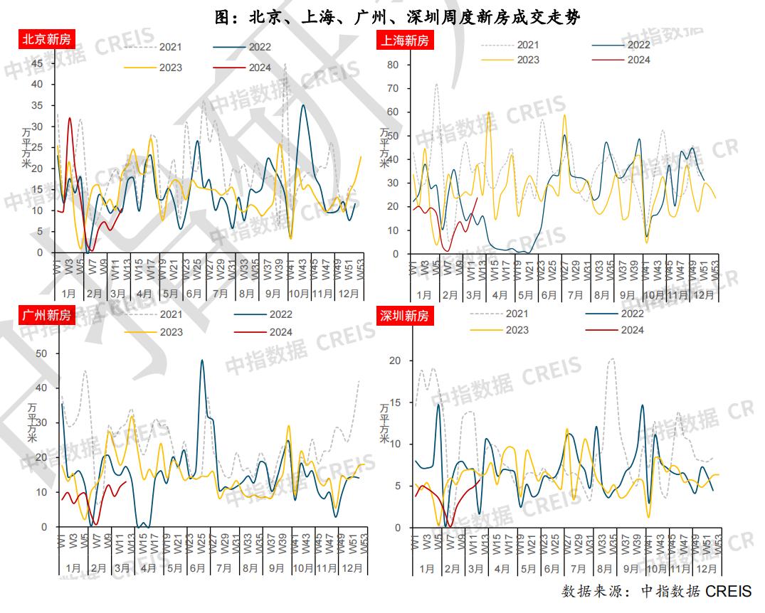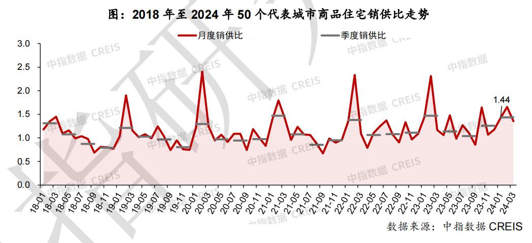 值得注意的是,据中国指数研究院初步统计,2024 年一季度,重点50城商品住宅月均批准上市面积约850万平方米,同比下降约四成。短期内出现了供小于求的局面。