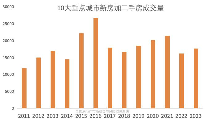 一线城市带头转变方向,从成交量上看,2023年楼市出现转机。据易居研究院监测的数据,全国十大重点城市2023年新房、二手房合计成交量比2022年增长了9%。不过,目前市场成交量还远不及2015年之后的年均水平,需要更多政策工具包支持。