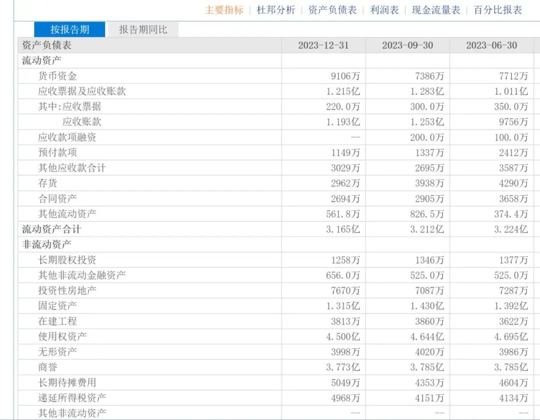 光正眼科资产负债表及现金流量表显示,截至2023年12月31日,光正眼科期末现金及现金等价物余额为6761万元,货币资金为9106万元,然而,其短期借款则为2.636亿元,一年内到期的非流动负债则为1.196亿元,债务问题开始浮出水面。