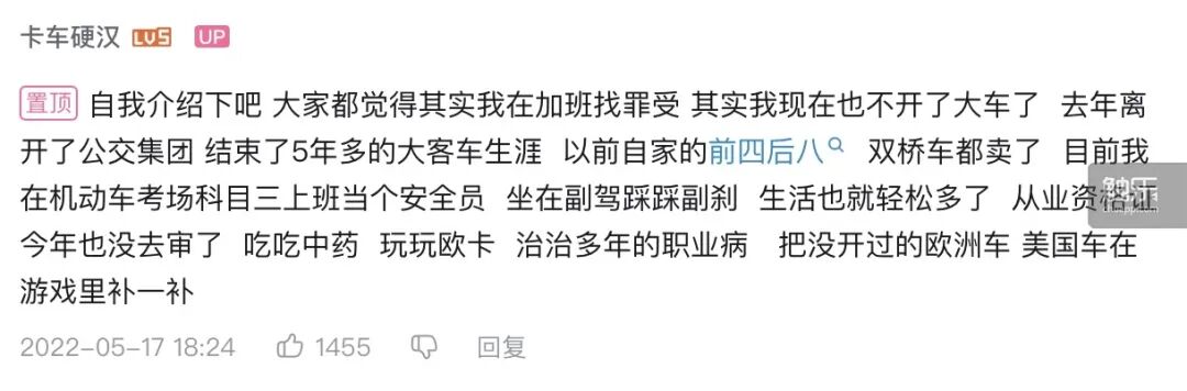 他没有直接回答“是”或“否”,而是说了这样一段话:“卡车司机有两种,一种是出来讨生活,赚辛苦钱的,他们没有兴趣,也没有精力去玩游戏;另一类是车迷,从事这个职业的时候天天骂街,不做这行了又天天想。”