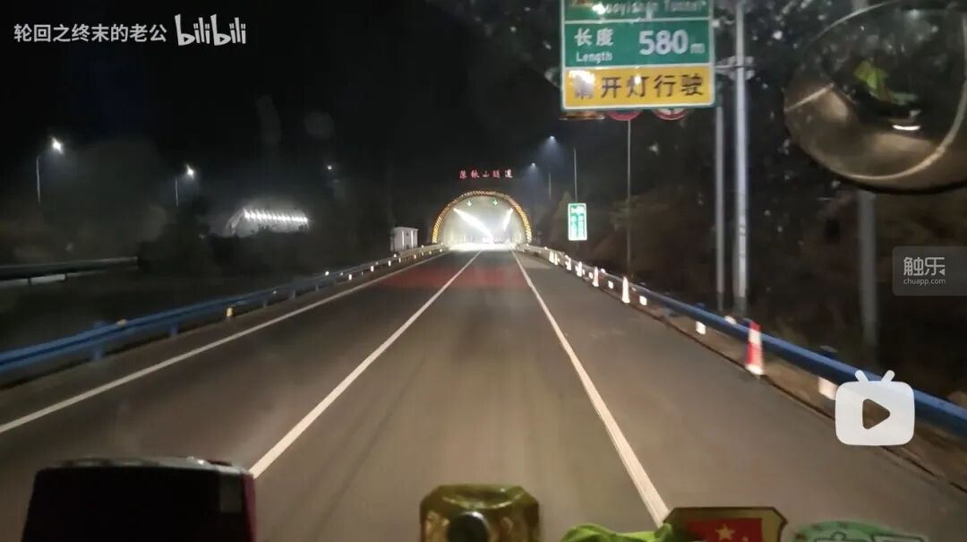 唐小圆在他的主页分享的驾驶视频,当时他在快递公司工作,视频中,他开的是解放J6P牵引车,正要通过落依山隧道