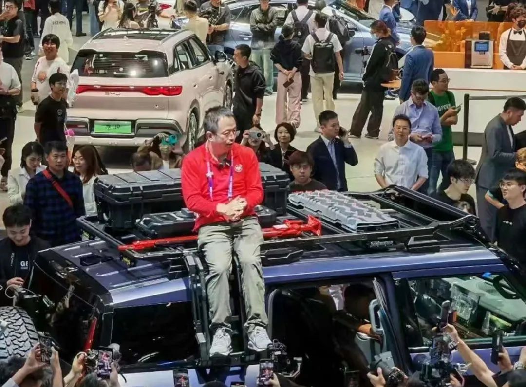 周鸿祎以非汽车行业从业者的身份发表着普通用户的观点与心声,带着互联网老炮的头衔在社交平台上“风生水起”,“红衣教主”的IP很快成为了车圈顶流。在车展首日,周鸿祎也遵循着互联网营销的运作模式和打法,每一次与车企老板的互动都成为热门事件,爬上车顶的举动让网友直呼“想到了上一次北京车展有人爬上特斯拉车顶维权”事件。