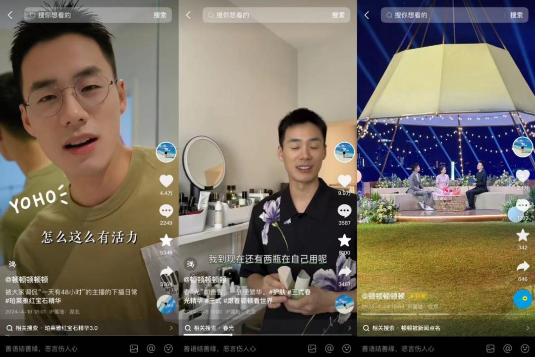 今年2月,顿顿在直播间给自己打广告,宣布个人的商务已经开通,开始对接品牌方。截至目前,顿顿已经接到了珀莱雅、三式两个护肤品牌的广告。此外,直播带货和商务代言之外,顿顿也出席了潮电盛典活动、参与录制了央视节目《远方的家》。