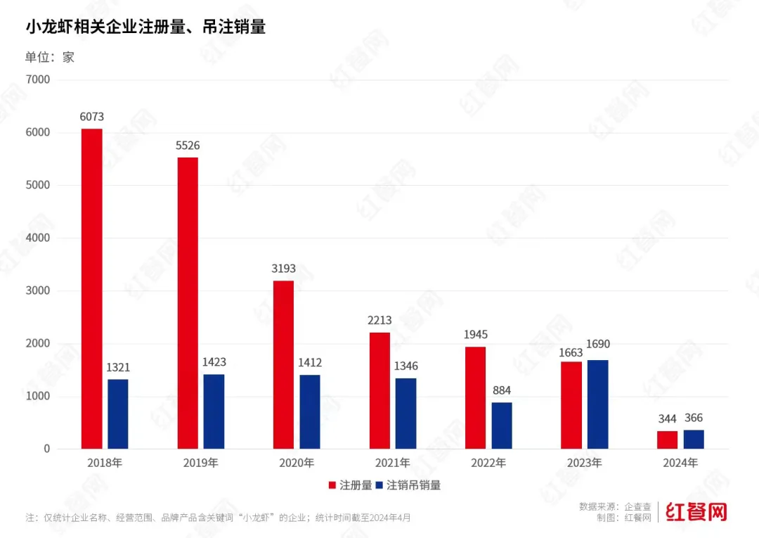 而在此后几年里,小龙虾的网红光环开始逐渐褪去,小龙虾相关企业注册量开始逐年下滑。