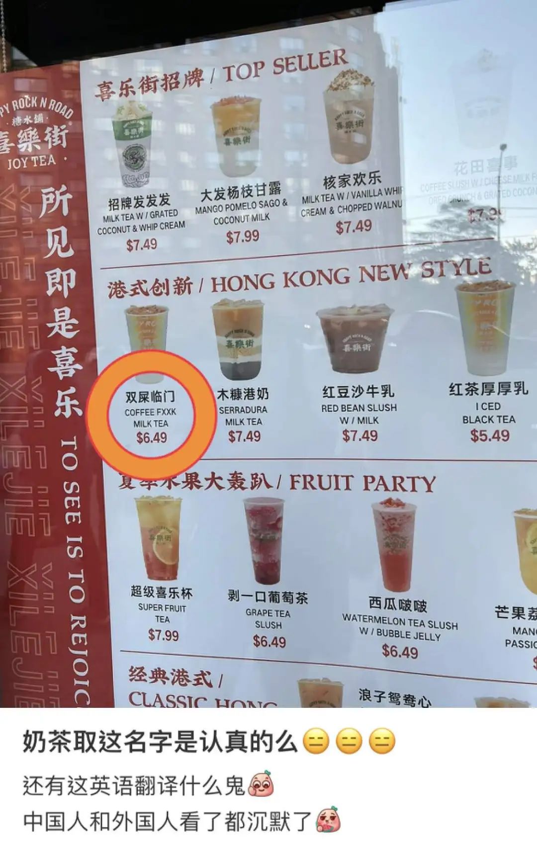“想点杯饮品享受一下chill的氛围,被奇怪的饮品名整成了羞耻play。”