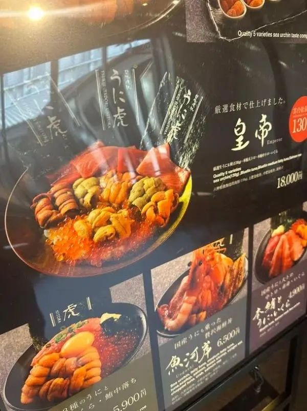 “这个盖饭使用精心挑选的高级材料(6种海胆黄和金枪鱼中段鱼腩),所以价格高是理所当然的。不过,日本人觉得贵所以不会买。大部分客人都是中国人,他们从上午7点开店前就开始排队等候了。”饭店员工说。