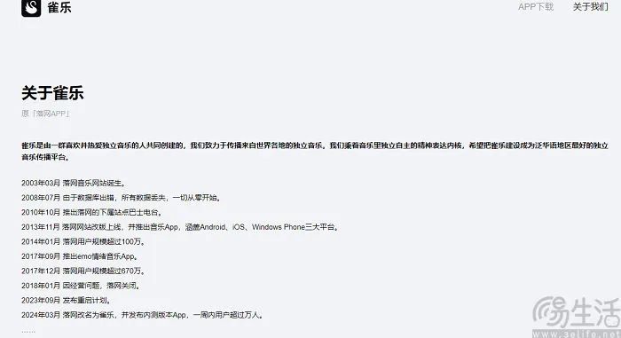 据了解,全新的雀乐官网及App均已上线。在官网公布的相关信息中显示,雀乐是由一群喜欢并热爱独立音乐的人共同创建,致力于传播来自世界各地的独立音乐,将秉着音乐里独立自主的精神表达内核,建设泛华语地区最好的独立音乐传播平台。而这些与此前的落网,似乎并无不同。