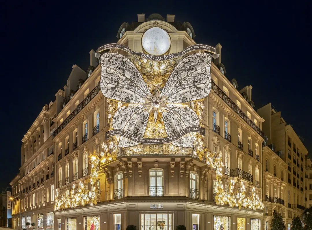 此外,今年Dior门店的巨型蝴蝶装饰,也被网友赋予了多版本的玄学解答。有人认为大型蝴蝶是一个“能量场”,能够吸引消费者流连忘返;也有人认为蝴蝶意味着“蜕变与重生”,对应着甲辰龙年的“九紫离火运”,是福气的象征。