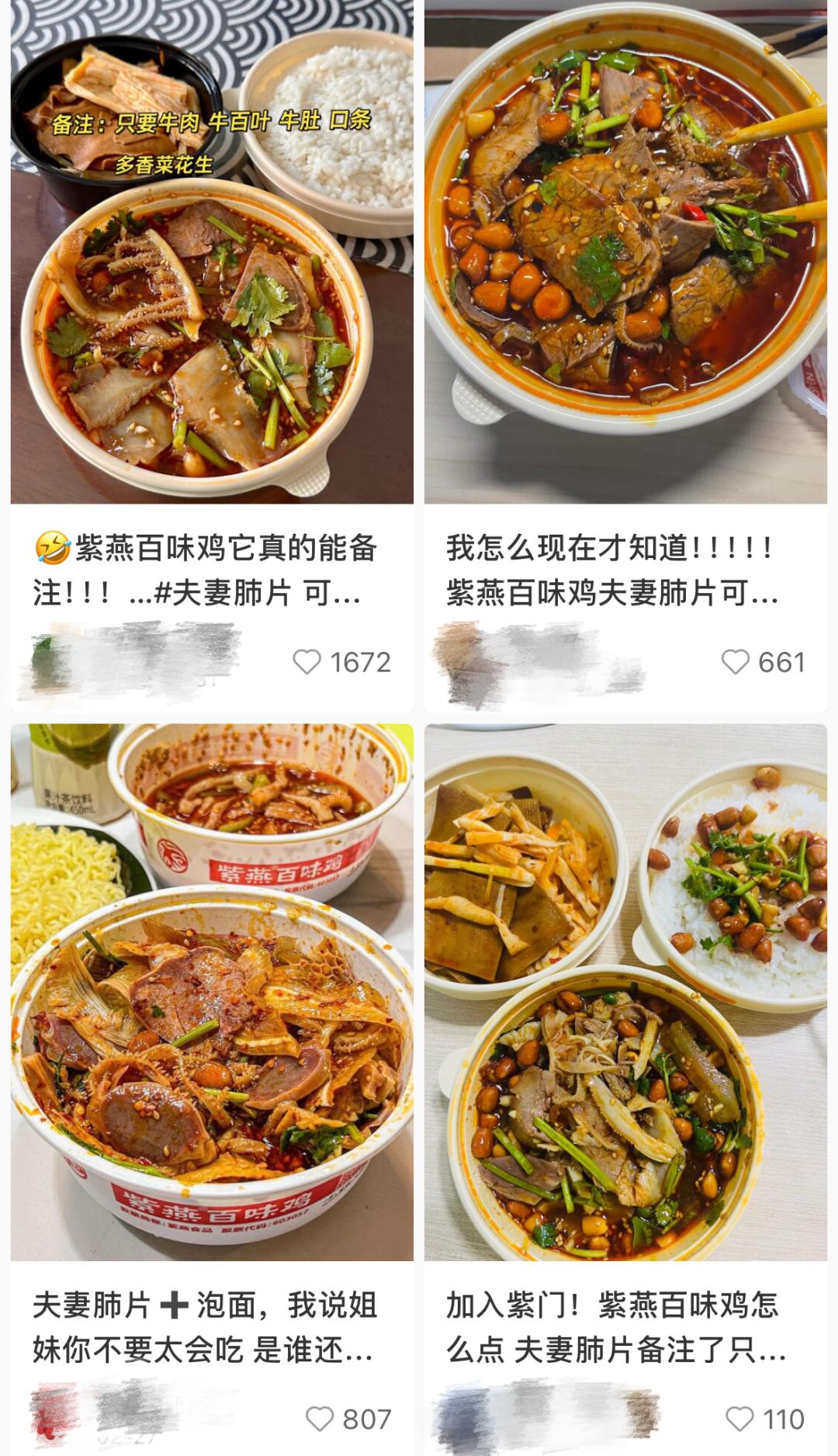网友@付付贴贴 回忆道,几年前的紫燕和你家楼下的夫妻店没什么差别,处处透露着一股老实人的本分,10元左右就能一大碗的素菜。