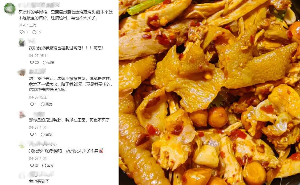 在紫燕吃出鸡冠,鸡头有些吓人就不放了。左图源:小红书@开心肖肖乐