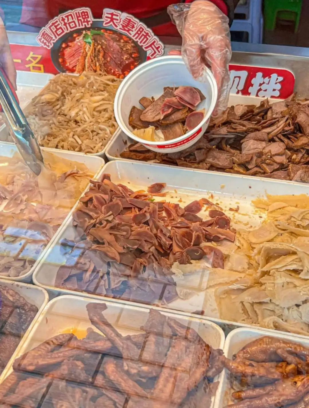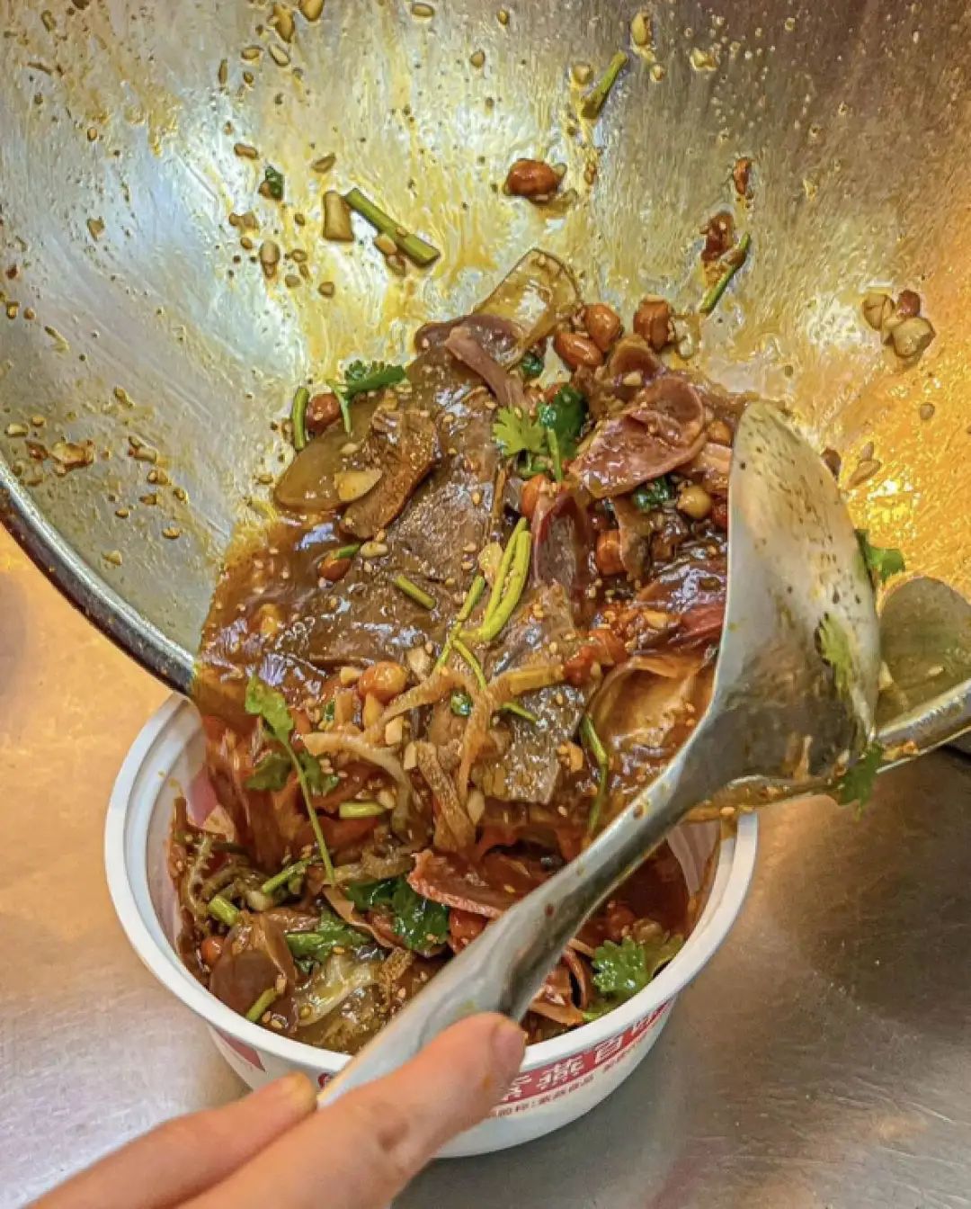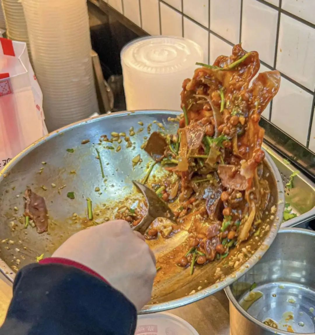 不仅吃的时候需要全神贯注,买的时候也是。因为每一个紫燕店员都得到了食堂大妈的真传——手抖,作为食堂大妈遍布全国的手抖派嫡传弟子,紫燕店员舀起夫妻肺片来一般要抖三抖: