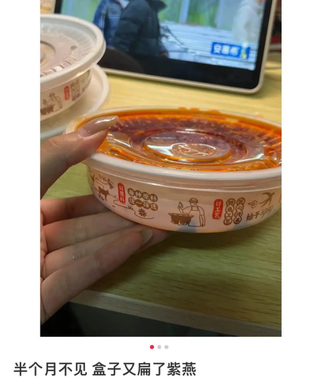 从半球碗到长方盒子,再到中间凸起一个半球大包,有网友指出:“够了紫燕百味鸡,再扁下去盒子就成纸了。”