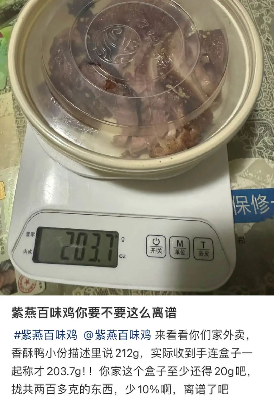 一方面是价格贵到月薪几万你都不敢随意吃紫燕,另一方面则是紫门信徒发现:“怎么重量也有水分?”