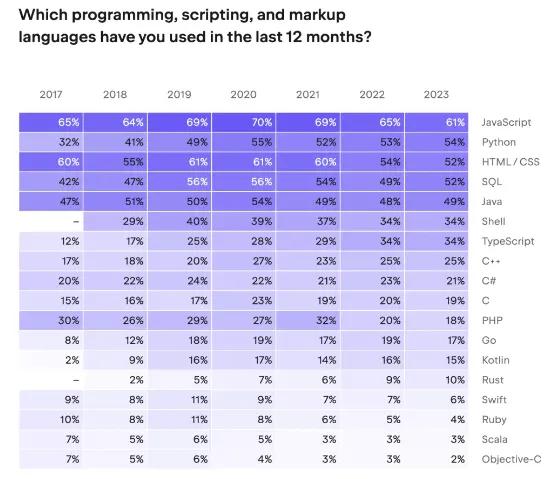 JetBrains 公布的开发者调查结果。