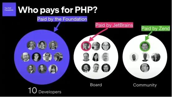 PHP 基金会于 2021 年 11 月正式成立,希望以非营利组织的身份承担起 PHP 项目的管理职责。PHP 基金会是由 JetBrains 领导的企业联盟所建立,其中包括 Automattic、Zend、Laravel 以及 Acquia(Drupal 的托管商)等。JetBrains 工程师 Roman Pronskiy 则出任项目负责人,目前在基金会网站上的头衔为“运营主管”。