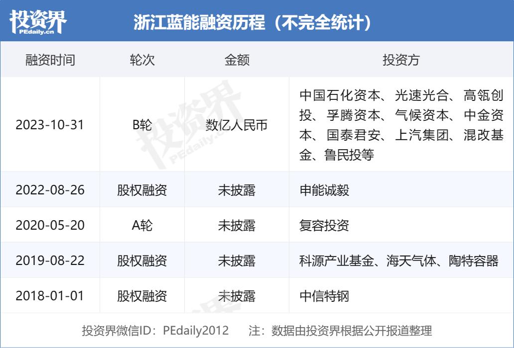 去年10月,浙江蓝能完成数亿元战略股权融资,由中国石化资本领投,光速光合、高瓴创投、孚腾资本、气候资本、中金资本、国泰君安、上汽集团、混改基金、鲁民投等10名国内知名产业及金融机构投资人共同参与投资。此轮融资完成后,蓝能正式启动上市进程。