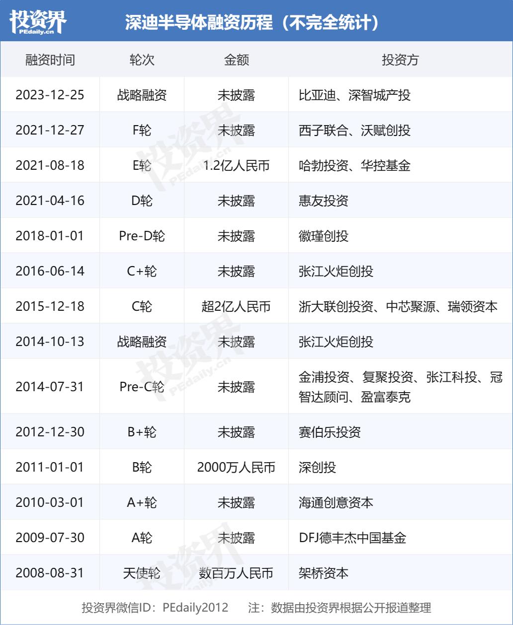 去年12月,深迪半导体获得新一轮战略投资,至此公司累计完成13轮融资,背后的投资方不乏深创投、赛伯乐投资、张江科投、金浦投资、浙大联创投资、中芯聚源、惠友资本、哈勃投资等、比亚迪等知名机构的身影。