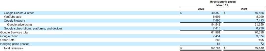 但谷歌还是追赶上来了。一季度财报显示,除了搜索的增长,YouTube广告收入81亿美元,同比增长 21%,主要受益于短视频和AI 视频工具的助力;谷歌云收入95.74亿美元,同比增长28%,超过了同期微软云21%的同比增长率。皮查伊介绍,目前谷歌云已服务超 60%的生成式AI初创企业和 90%的 AI独角兽公司。
