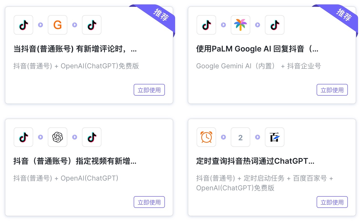 例如,在某个AI服务的网站上显示,只需要一步绑定自己的抖音账号,就能在指定的视频下自动调用ChatGPT进行回复。还可以增加筛选条件、设定回复风格等自定义设置。
